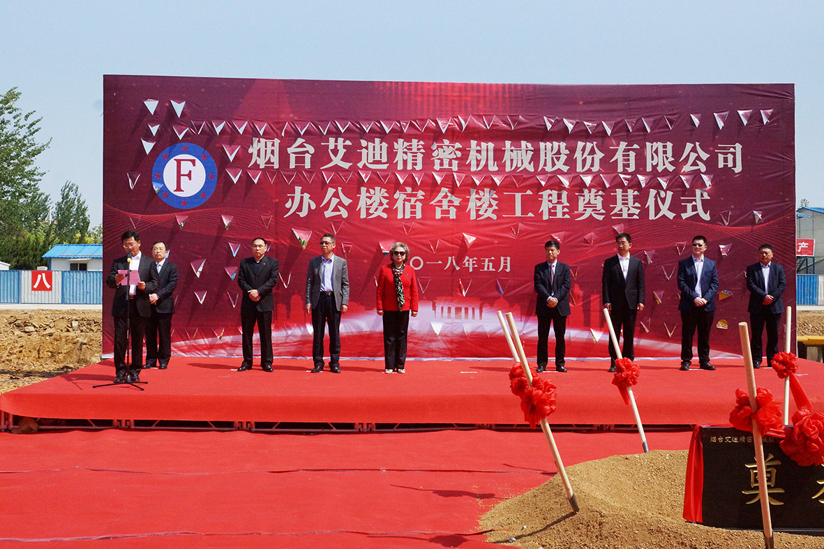 2018年(nian)5月4日上午(wu)10點(dian),煙臺(tai)艾迪(di)精密(mi)機(ji)械股(gu)份有限(xian)公(gong)司(si)(si)(si)辦公(gong)樓、宿舍樓工程奠(dian)基儀式在工地現場隆重舉行(xing)。參加此(ci)次(ci)慶典的有,煙臺(tai)艾迪(di)精密(mi)機(ji)械股(gu)份有限(xian)公(gong)司(si)(si)(si)董事(shi)長宋飛先(xian)生(sheng)、煙臺(tai)飛龍集團有限(xian)公(gong)司(si)(si)(si)董事(shi)長宋勇先(xian)生(sheng)等(deng)公(gong)司(si)(si)(si)領導(dao)及全體(ti)員(yuan)工。