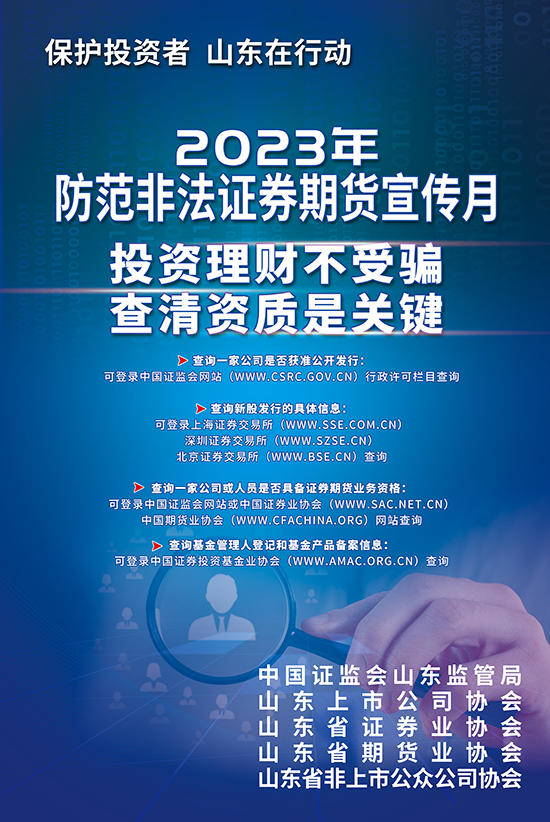 為(wei)進(jin)一步倡導理性(xing)投資(zi)文化,切實維護(hu)(hu)(hu)廣大投資(zi)者(zhe)(zhe)合法權(quan)益,中國證(zheng)監會決定將(jiang)每年5月15日設(she)立為(wei)“全(quan)國投資(zi)者(zhe)(zhe)保(bao)(bao)護(hu)(hu)(hu)宣傳(chuan)日”,希望通過全(quan)社會積(ji)極(ji)倡導理性(xing)投資(zi)文化,強(qiang)化投資(zi)者(zhe)(zhe)保(bao)(bao)護(hu)(hu)(hu)意識,全(quan)面構建資(zi)本市場投資(zi)者(zhe)(zhe)保(bao)(bao)護(hu)(hu)(hu)新格局。