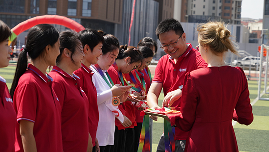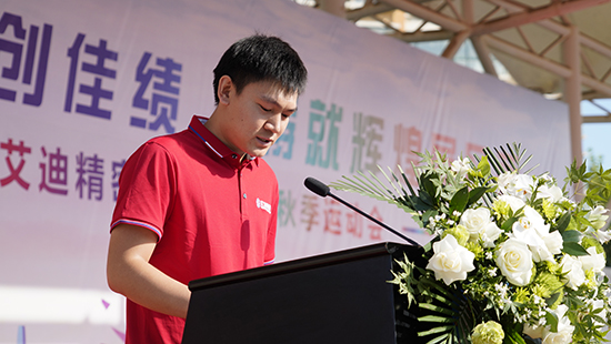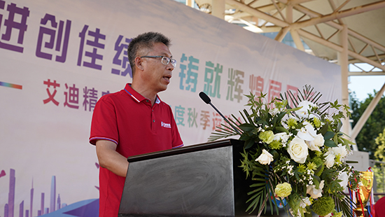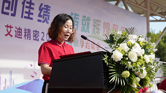 艾迪精密副總經理宋鷗宣讀運動會比賽結果,艾創/銳能公司、精密公司、液壓公司分別獲得團體積分第一、二、三名;精密機加/磨床代表隊、液壓鑄造車間代表隊、馬達事業部二隊獲得優秀方隊獎項。