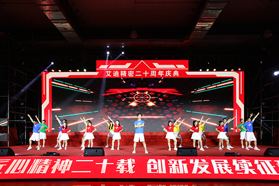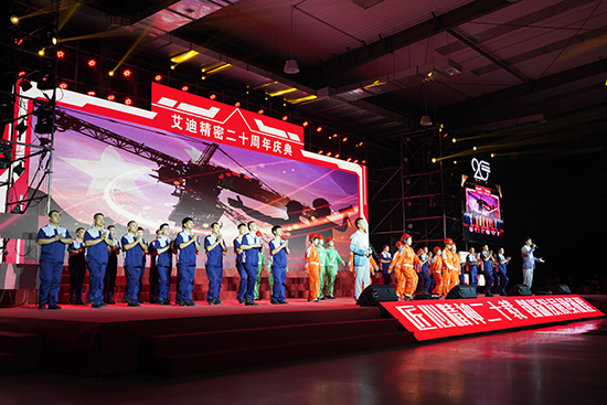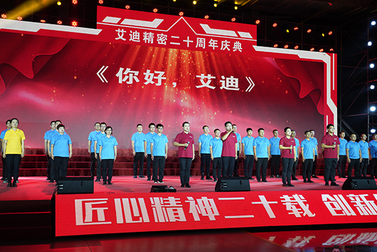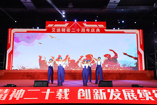 合唱《擼起袖子加油干》、鼓舞《戰鼓錚錚》、詩朗誦《匠心二十載 創新向未來》、走秀《艾迪工人有力量》,以及合唱《少年》,展現了艾迪人從創業初期一路走來的艱辛歲月,從青絲到白發,從懵懂到堅定,他們無悔無畏、信心滿懷。