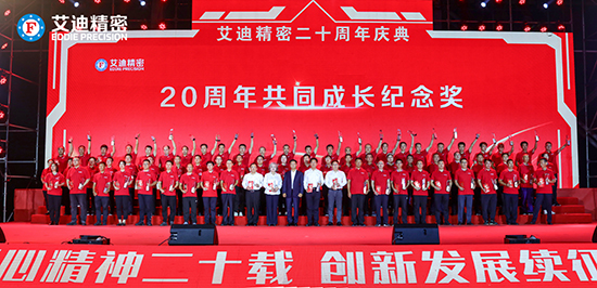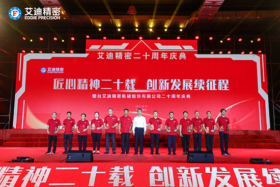 以匠心引路,以技藝育人。二十載薪火相傳,公司涌現了一大批優秀人才,為推動公司高質量發展提供了堅實的人才支撐和智慧保障。慶典上頒發“傳承賡續獎”、“砥礪攻堅獎”、“拓荒建業獎”、“特別貢獻獎”。功勛員工們勤勉敬業的職責與忠誠,組成了艾迪精密今天的絢麗,也將照亮明天的征程。