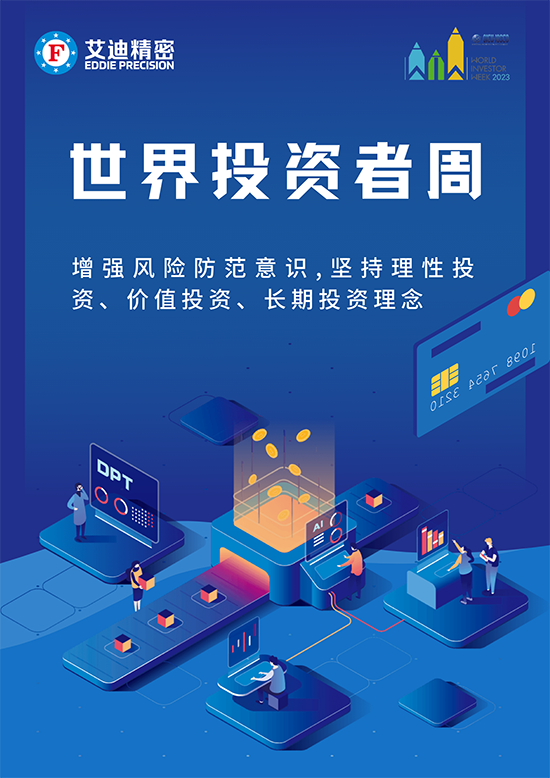 2023年10月23日至27日,中國證監會舉辦“2023年世界投資者周”活動,圍繞“投資者風險應對能力”和“可持續金融”兩大主題展開。在“世界投資者周”來臨之際,艾迪精密提醒您:增強風險防范意識,堅持理性投資、價值投資、長期投資理念。